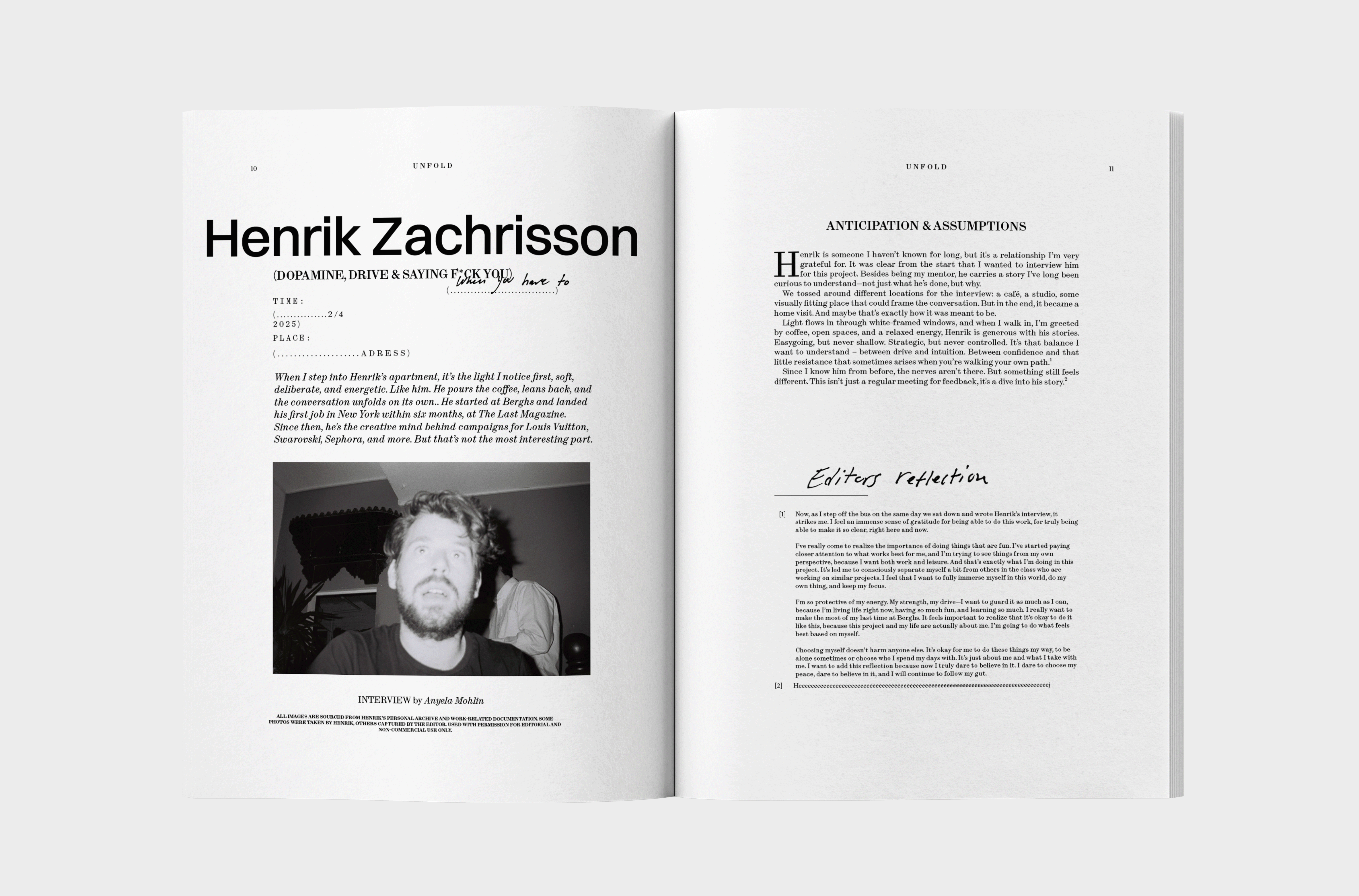 Unfold is an ongoing visual narrative mapping my creative direction. By combining self-exploration with conversations and interviews with creatives at different stages of their careers, I document my own development while uncovering the underlying drives behind creative work.